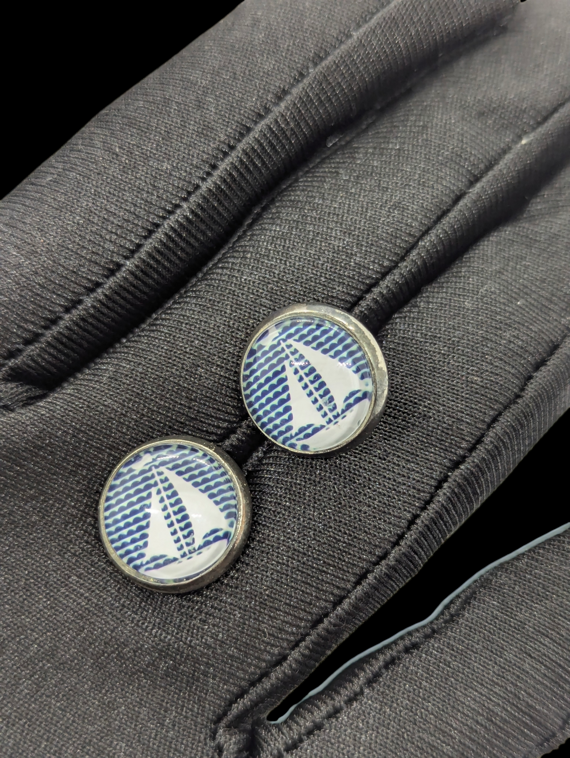Sailboat Graphic Stud Earrings – Nautical Acrylic Dome Design