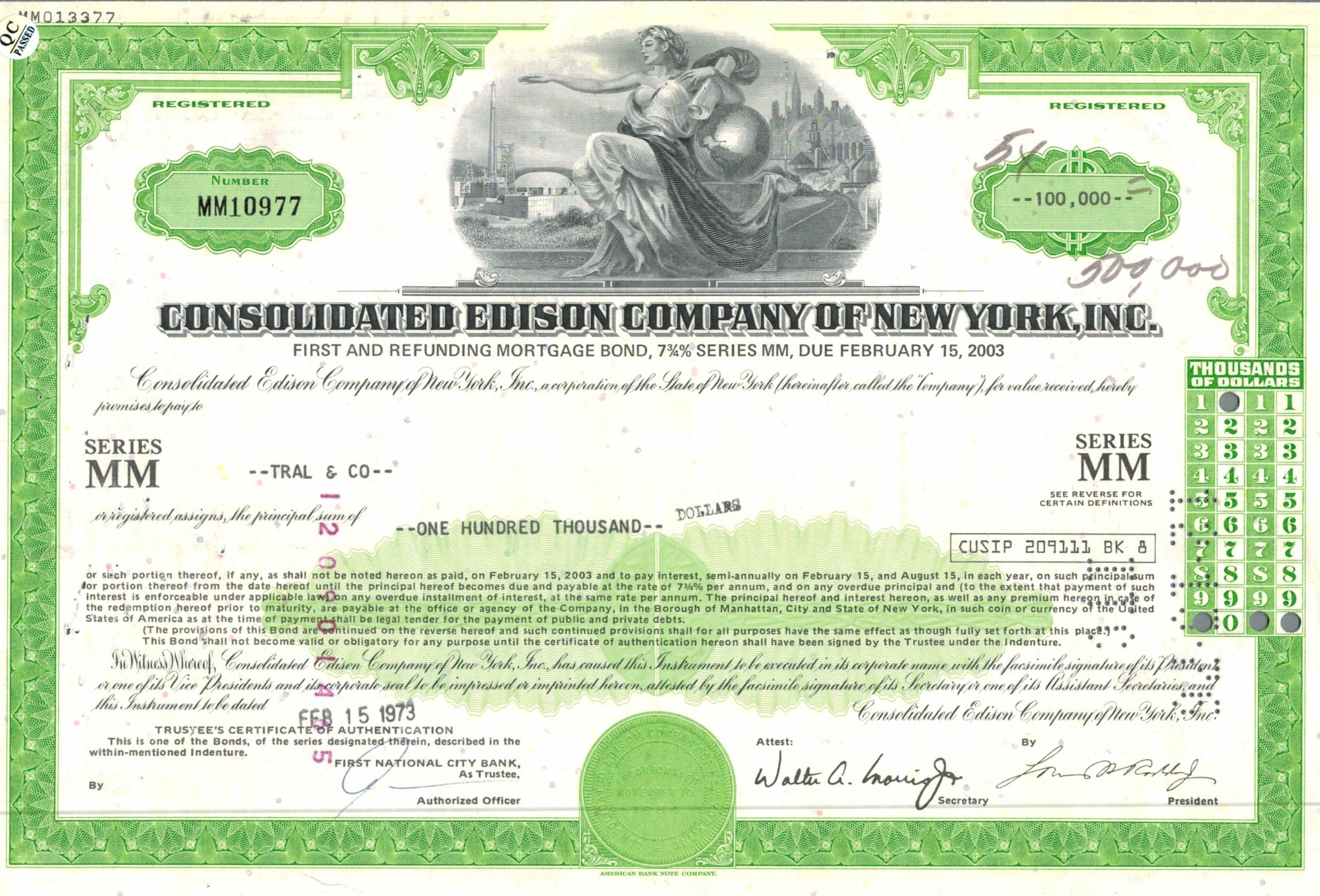 new york utility, american bank note, 1970s finance, vintage bond, con edison, industrial ephemera, corporate history