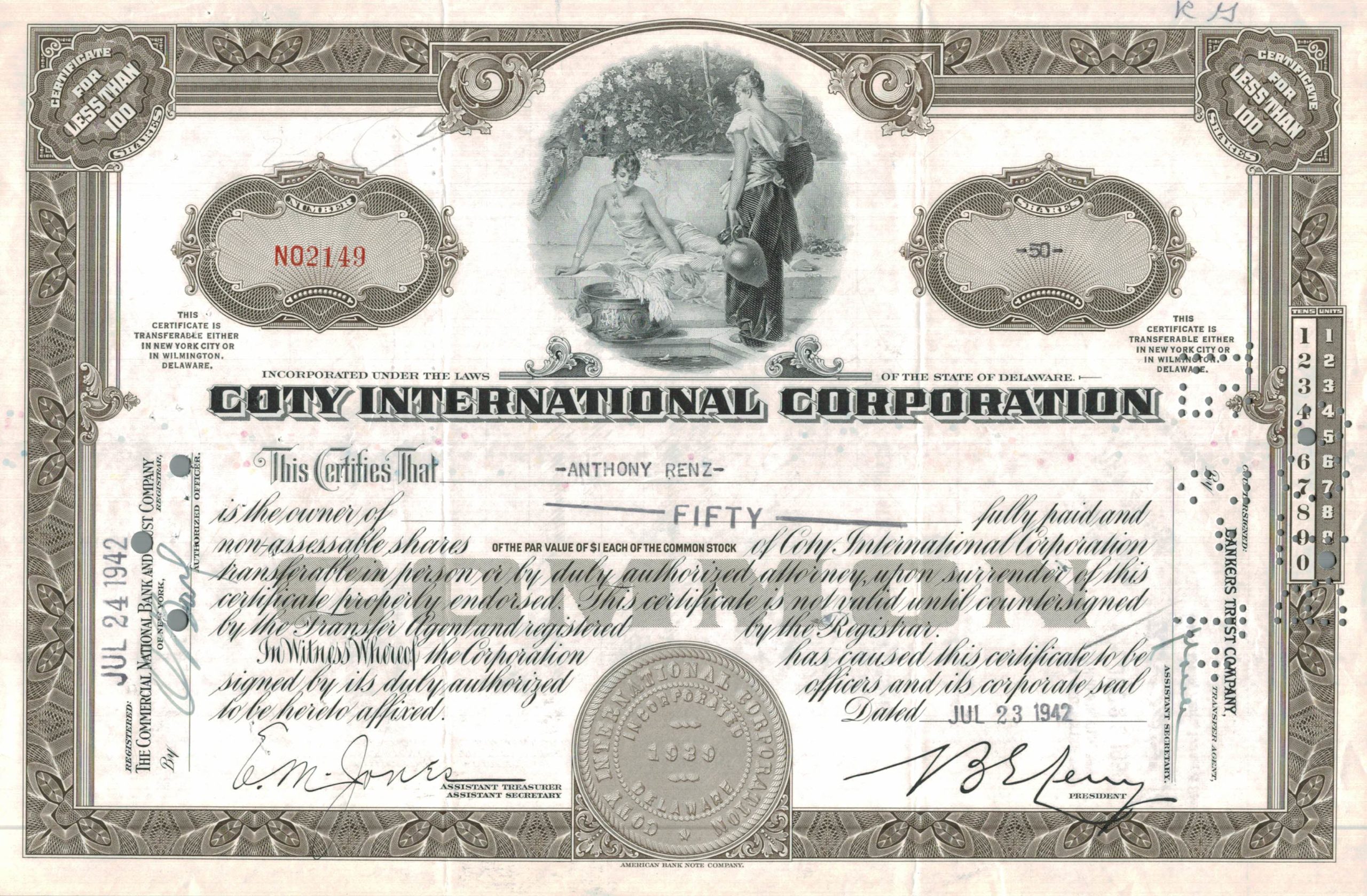 Coty International Corporation Share Certificate 1942 – 50 Shares