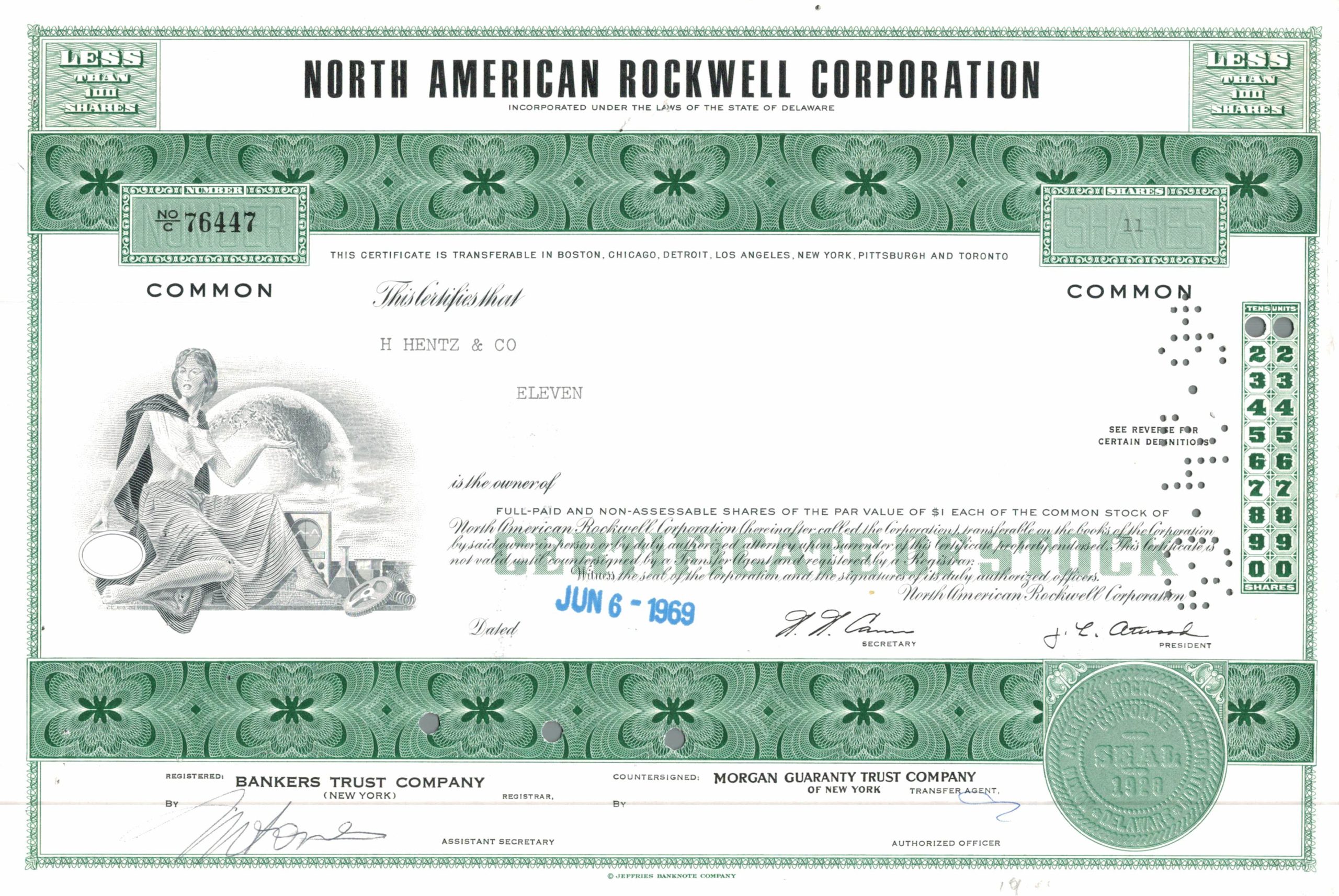 north american rockwell, aerospace, defence, american, delaware, share certificate, engraving, space age, mid-century, corporate, collectors, industrial
