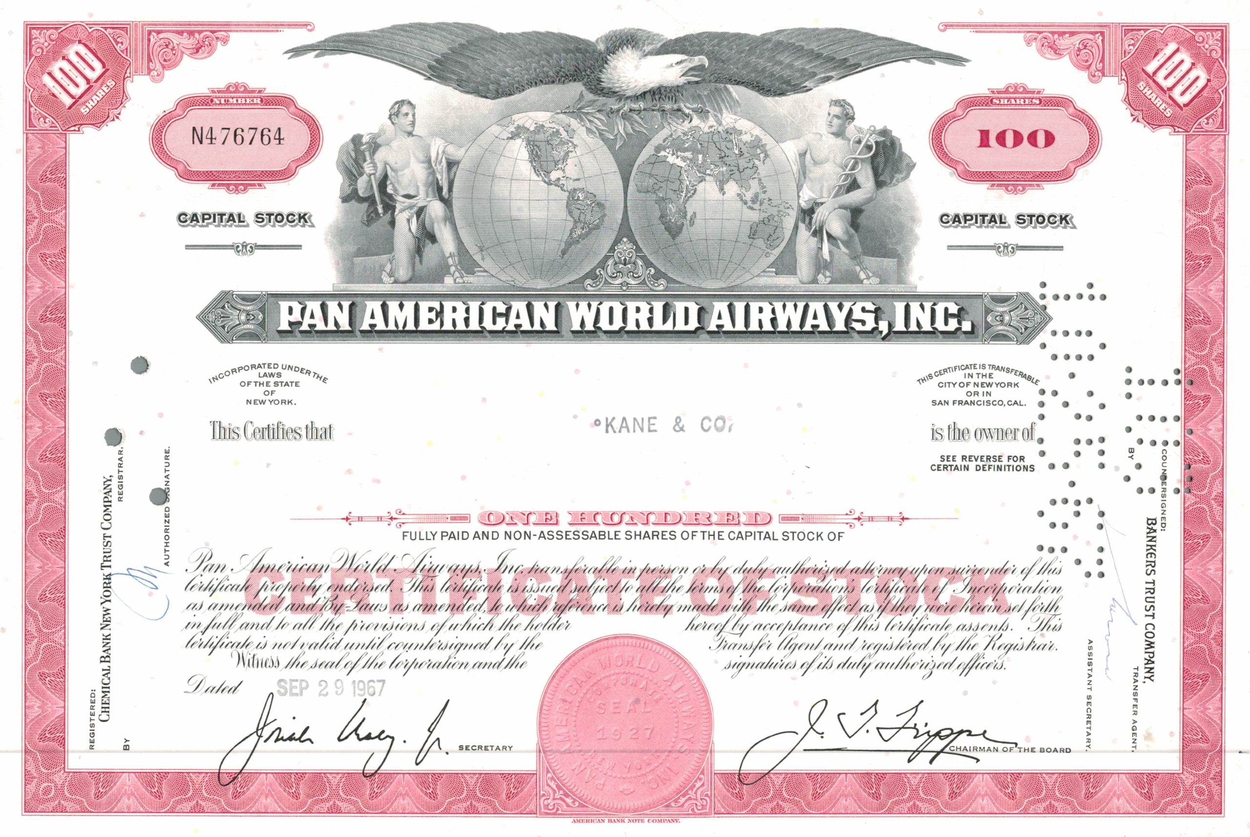 pan american world airways share certificate