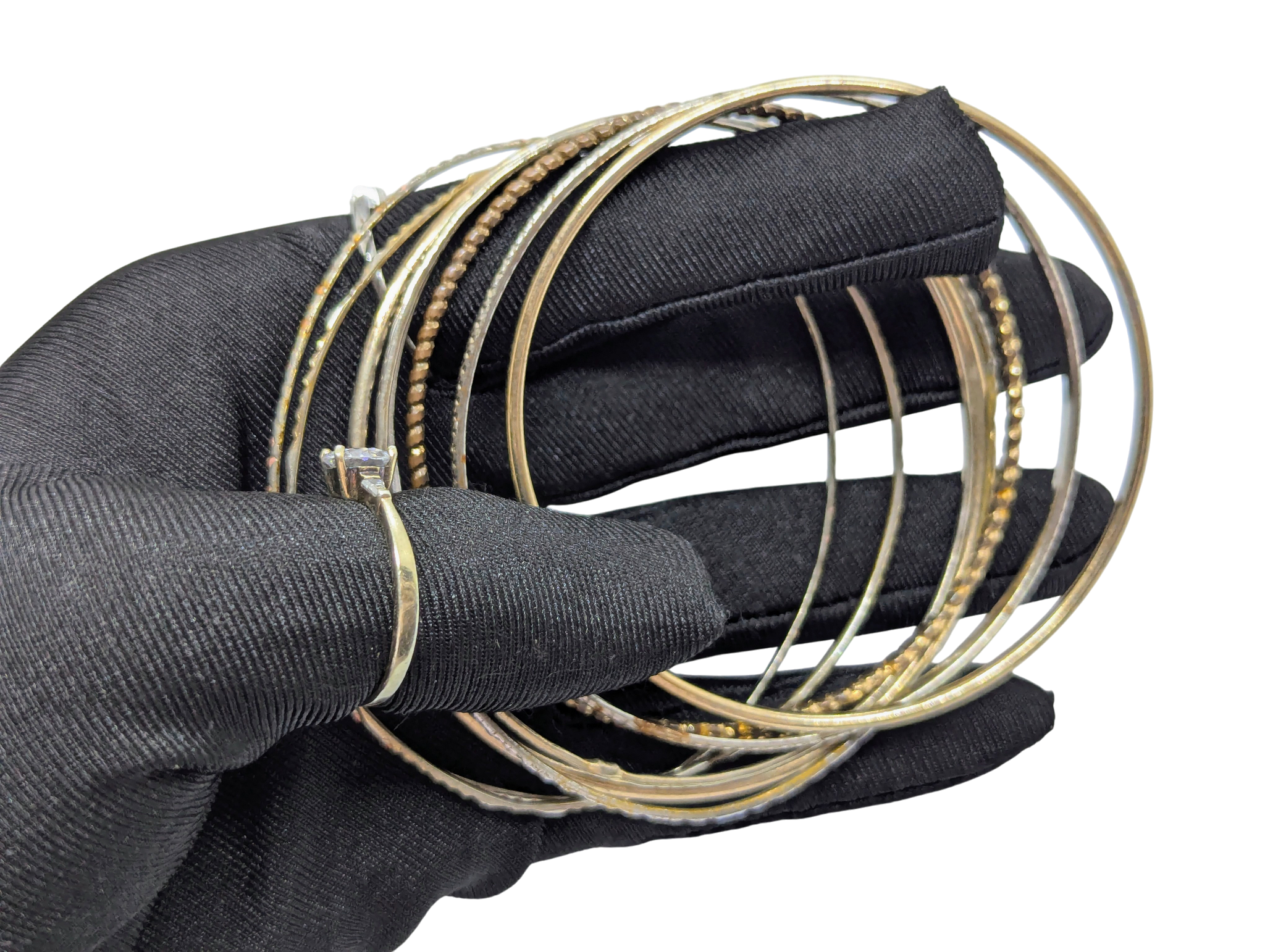 Quantity: 8 bangles (mixed textures: plain, faceted, braided)